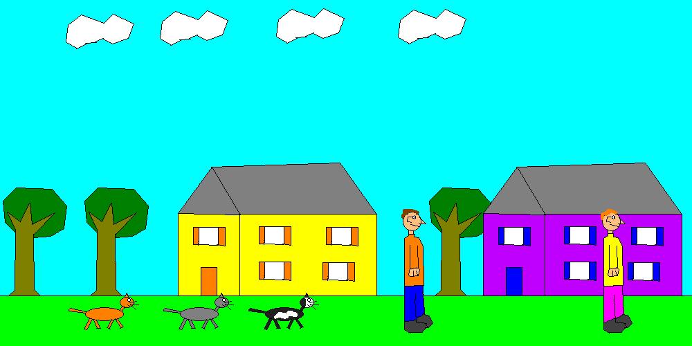 view | a picture of 3 cats and 2 boys |