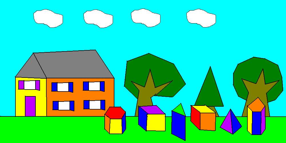 view | a picture of a bunch of shapes next to a house |