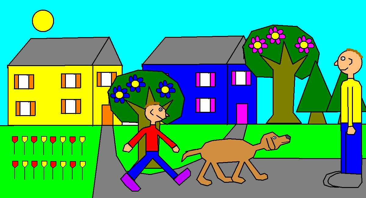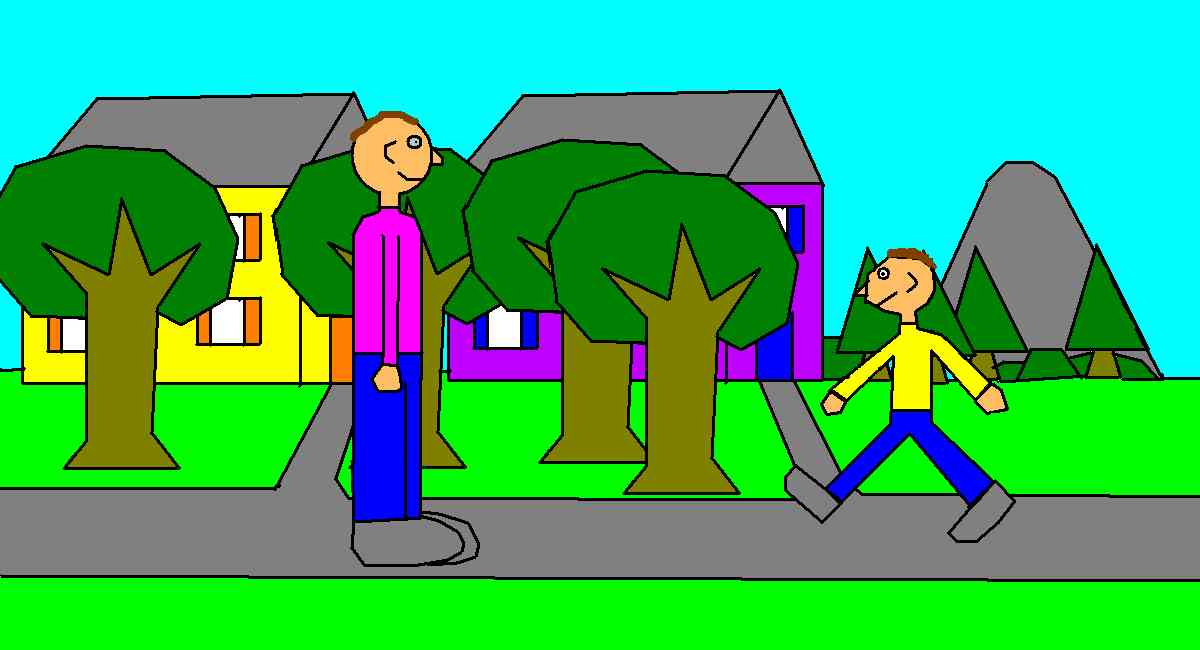 view | a picture of a boy walking and a man standing |