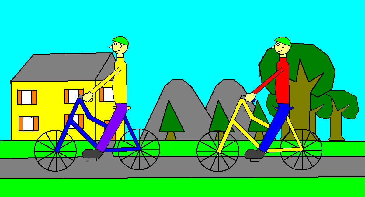 view | a picture of 2 boys riding bikes |