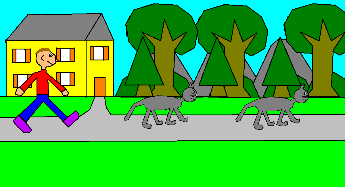 view | a picture of a boy and two cats |